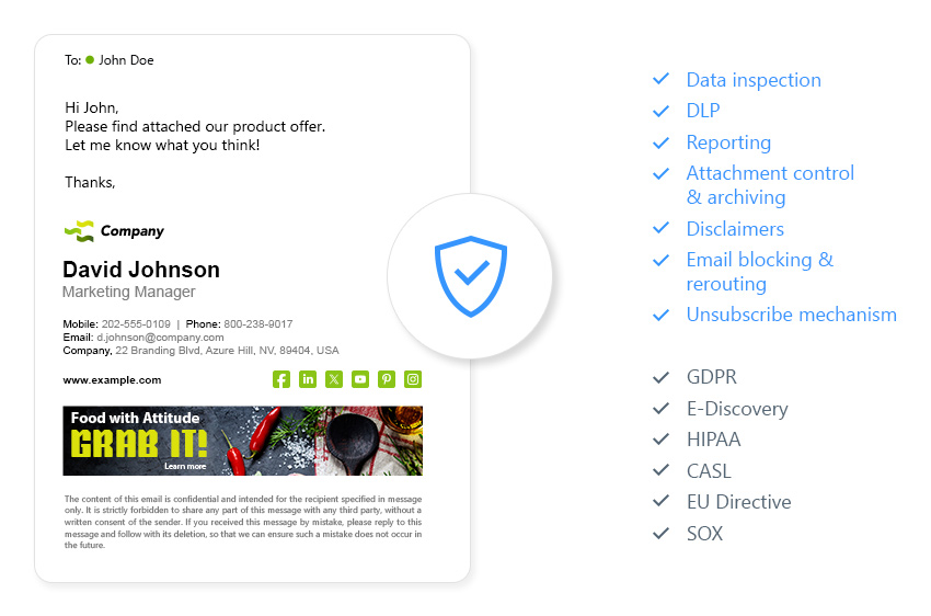 若贵公司使用Microsoft Exchange Server SE,CodeTwo Email Signatures On-prem可助您符合多项反垃圾邮件法规。