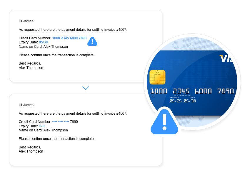 未经充分同意或监督,切勿通过电子邮件发送敏感数据,例如个人信息、医疗和财务记录、源代码或信用卡号码。在《通用数据保护条例》(GDPR)、《加州消费者隐私法案》(CCPA)等隐私法规实施后,此项要求尤为关键。然而实际操作中,此类数据可能因用户疏忽误发,甚至存在故意泄露的情况。因此企业必须部署适用于邮件系统的数据保护机制。