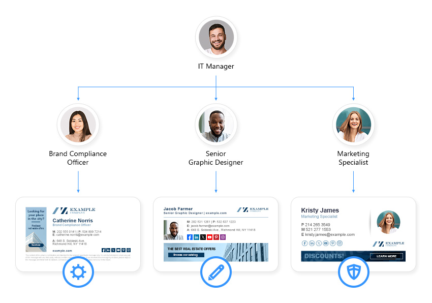 根据选定属性、发件人、收件人、SMTP地址、域名、Active Directory组成员身份等条件,为用户组及个人管理独特的邮件签名模板。程序将从Active Directory提取信息,确保每位用户拥有个性化签名,同时在邮件中统一展示公司标识或横幅。