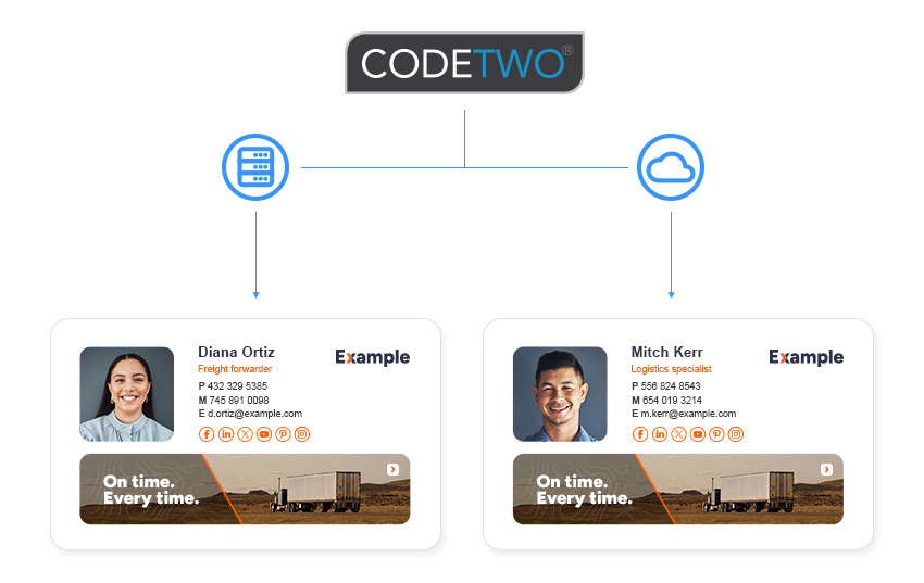 CodeTwo Email Signatures On-prem 旨在确保设置传播(settings propagation)与邮件处理的高效性不受组织规模或服务器数量影响。