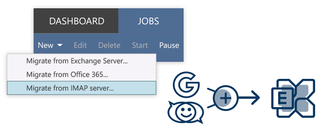 若您计划将用户邮件从支持IMAP的服务器(如Google Workspace、Zimbra、IBM Notes、Zarafa或Kerio Connect)迁移,CodeTwo Exchange Migration将为您提供得力支持。相较于原生迁移方案,我们的迁移工具能以更少的时间和精力将邮件转移至本地Exchange服务器。