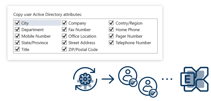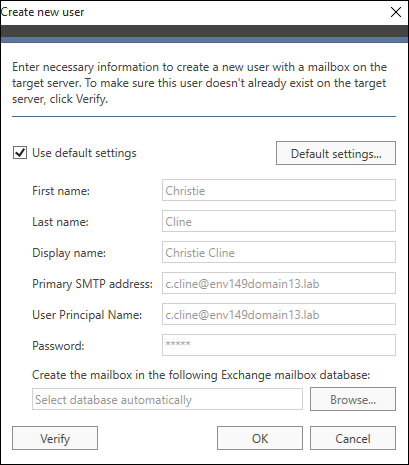 CodeTwo Exchange Migration将根据您为SMTP地址、UPN或显示名称提供的命名规则,自动创建带邮箱的目标用户。您还可选择需复制至目标Exchange服务器的用户Active Directory属性,以及指定这些邮箱应创建/启用的Exchange数据库。
