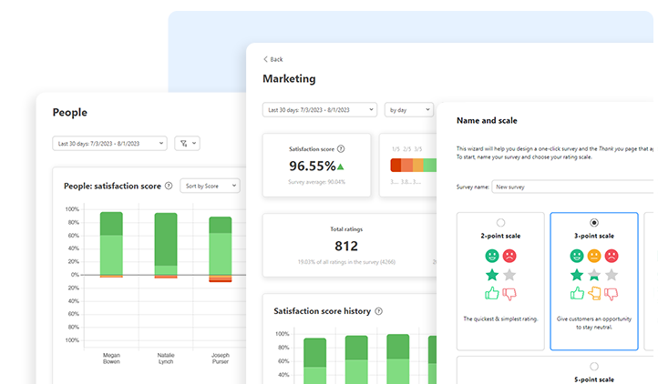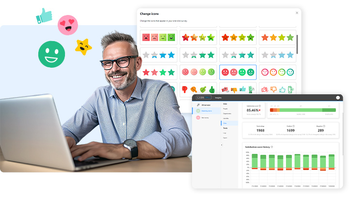 在CodeTwo,我们打造了适用于所有企业的客户满意度调查工具。无论您是小型家族企业还是跨国公司,您和您的同事都能通过一键式调查洞察获得以下收益: