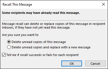 借助新版邮件撤回功能,您可从任何子文件夹(如“已删除邮件”)甚至自定义邮箱文件夹中收回邮件。而经典版撤回功能仅支持收件人收件箱。例如当收件人手动移动邮件或使用规则自动转移邮件时,此功能便极具价值。