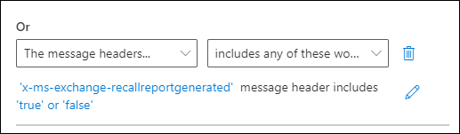 c. 设置标题名称为 x-ms-exchange-recallreportgenerated,标题值(关键词)设为 true 或 false。