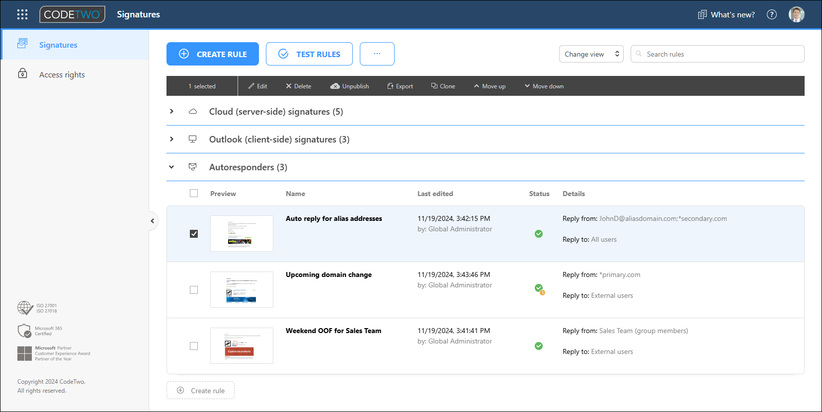 这正是您一直需要的解决方案?立即了解CodeTwo Autoresponder for Microsoft 365,探索其与CodeTwo Email Signatures 365的协同运作方式。