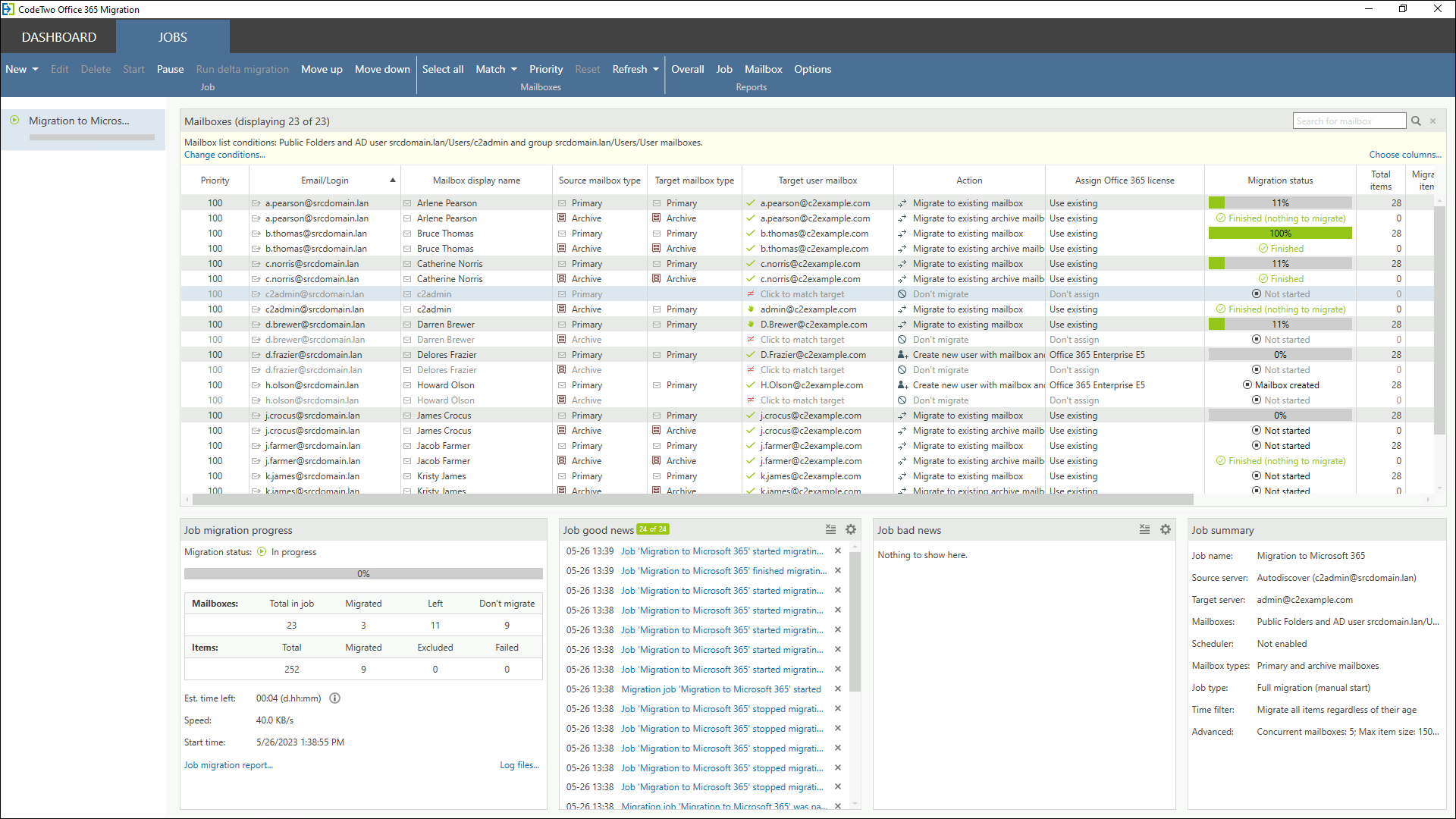 使用本程序创建的迁移任务可按需安排执行时间。但请注意,此功能并非默认的停机调度工具。通过CodeTwo软件迁移数据,可确保业务流程零中断,员工仍能如常访问数据。