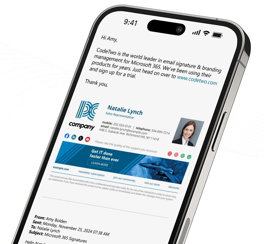 CodeTwo 在各个方面都超出了我的预期。我推荐 CodeTwo Email Signatures for Office 365 给任何需要更好地控制用户电子邮件签名的人。